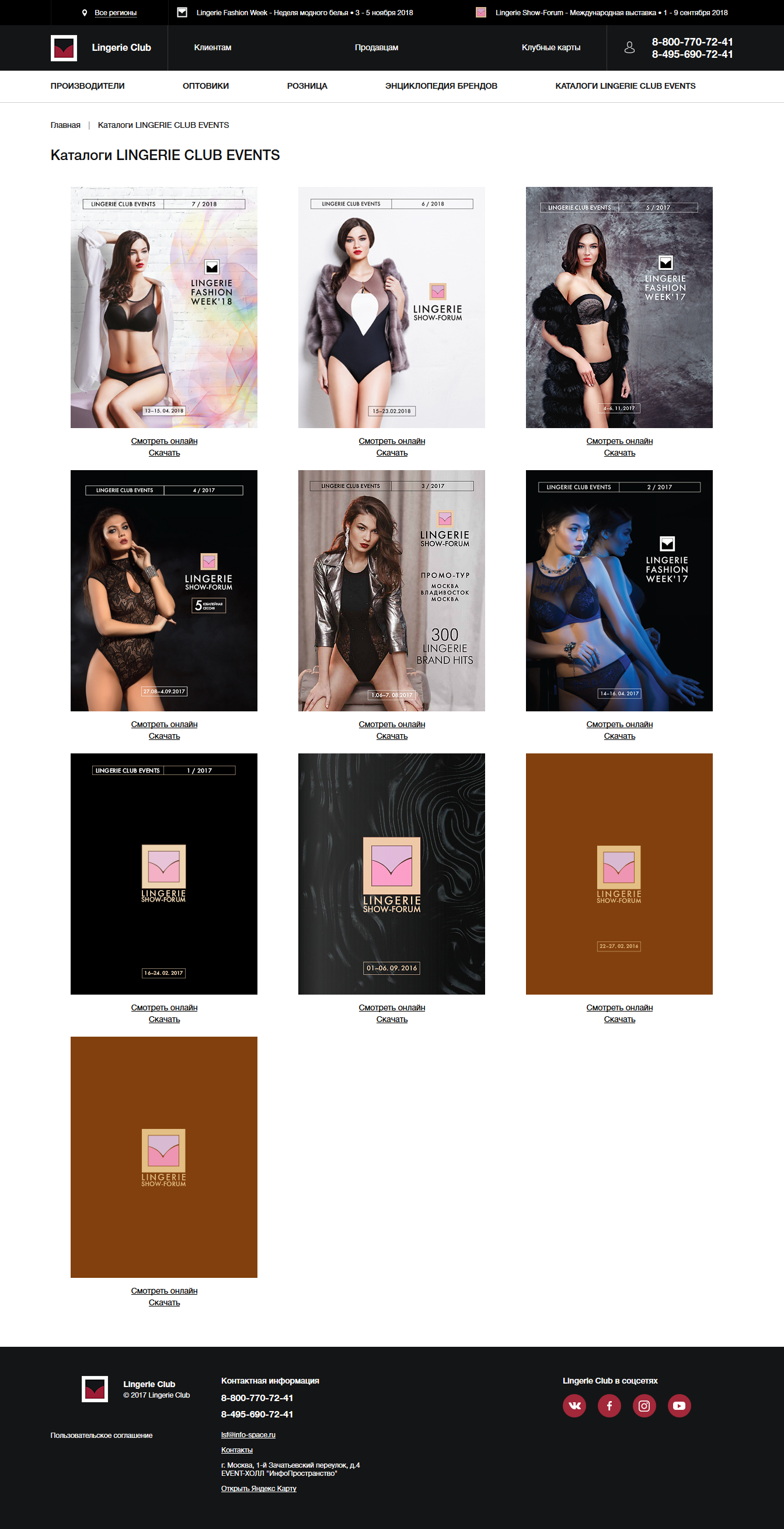 • На сайте анонсируют мероприятия Lingerie Show, настроены посадочные страницы через многосайтовость 1С Битрикс с целью регистрации на мероприятия.